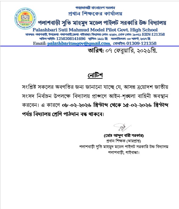 পলাশবাড়ী সুতি মাহমুদ মডেল পাইলট সরকারি উচ্চ বিদ্যালয়, পলাশবাড়ী,গাইবান্ধা।